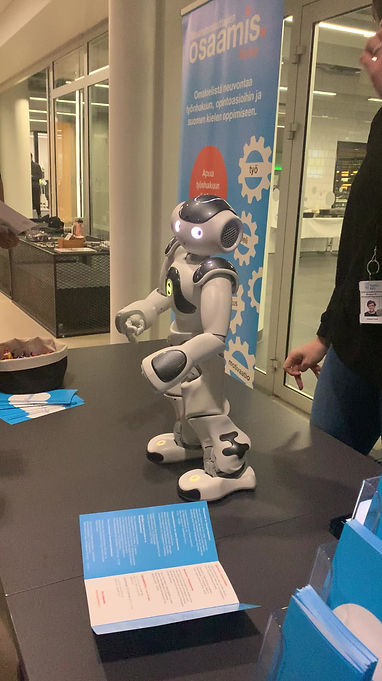 For exemple the start Up Osaamis. They designed a smart robot to learn a new language. As a little anecdote, the lady told us that she really is a child to be watched because when you don’t take care of him, for example, he may fall off a table.